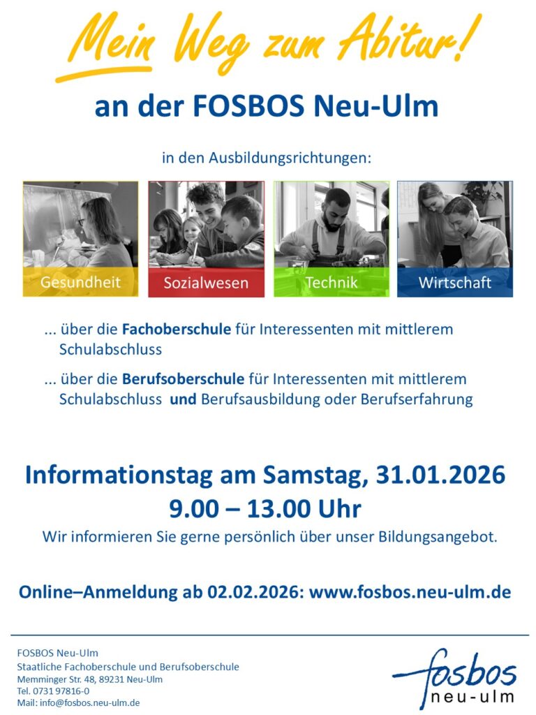 Hier finden Sie alle wichtigen Informationen zum Informationstag an der FOSBOS Neu-Ulm auf einen Blick: